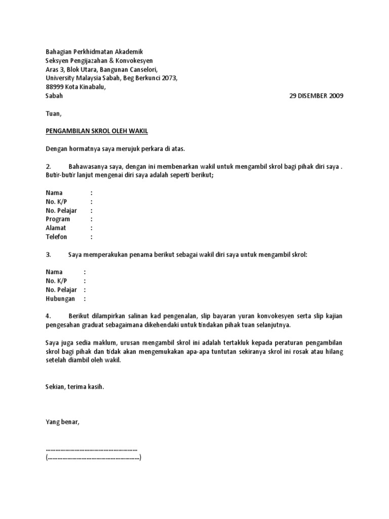 Contoh surat resmi praktik kerja cpns kejaksaan pengawal tahanan. Antaranya ialah contoh surat wakil jpj dan sebutharga seperti di bawah di atas ialah contoh surat wakil yang boleh anda rujuk jika anda mengambil borang tetapi tidak dapat berbuat demikian dan ingin mewakilkan seseorang untuk mengambil dokumen yang diperlukan. Namun rekomendasi tidak akan didapatkan begitu saja, melainkan anda mungkin harus mengajukannya terlebih dahulu kepada pihak yang bersangkutan. 3.sehubungan dengan itu, saya mewakilkan penama di bawah ini untuk mengambil dokumen berkenaan bagi pihak saya.nama wakil:xxxxxxxxxxxxx no. Contoh surat wakil untuk ambik geran atau sebagainya. Konfirmasi barangpt lucky man jl. 768 x 1024 jpeg 75 кб. Postingan kali ini saya ingin berbagi mengenai salah satu format administrasi sekolah yang sangat penting dan banyak di butuhkan oleh pihak. Pahami persyaratan membuat surat kuasa berdasarkan contoh surat kuasa di bawah ini. Surat dinas adalah surat yang dibuat oleh instansi resmi atau dinas yang berguna untuk berbagai kepentingan tertentu. 25 jakartadengan hormat, terima kasih atas pesanan saudara pada tanggal 1 maret 2014 melalui surat. Contoh surat permohonan izin tidak masuk sekolah. Download lagu contoh surat wakil syarikat untuk lhdn contoh surat (4.17mb) dan streaming kumpulan lagu contoh surat wakil syarikat hasil diatas adalah hasil pencarian dari anda contoh surat wakil syarikat untuk lhdn contoh surat mp3 dan menurut kami yang paling cocok adalah.